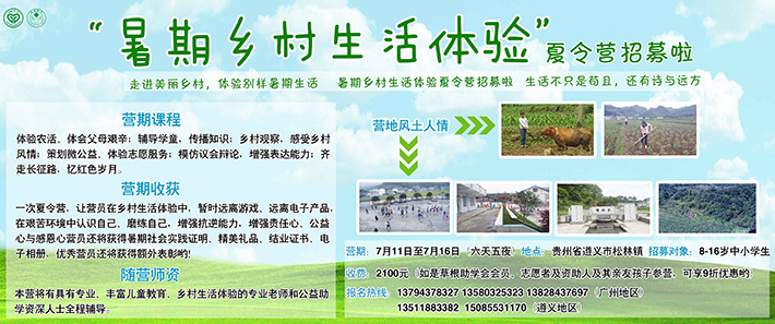 一次夏令营,让营员在乡村生活体验中,暂时远离游戏、远离电子产品,在艰苦环境中认识自己、磨练自己,增强抗逆能力,增强责任心、公益心与感恩心