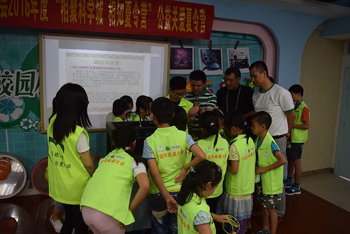 最后,大家还一睹3D打印的神秘风采,马騳骉三维科技有限公司的冯国光老师给大家上了别开生面的一堂课,讲述了3D打印技术的历史、发展以及其在工艺、医学、服装等领域的应用。现场打印了一条3D小鱼,引得营员、家长以及志愿者们纷纷上前观看。