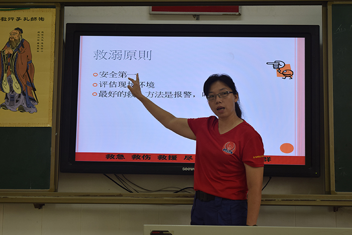 第二节课是的国家紧急救助员、美国心脏协会导师王莉萍老师给大家带来的“安全体验”课。课上老师给营员们讲解了用火安全、交通安全、游泳安全、日常急救常识等,营员们听的很投入,不但认真思考老师的问题并回答,还积极向老师提问。课间休息时候,细心的王老师发现了有营员在玩橡皮筋,上课时特别提出来如果橡皮圈圈在手指上忘记拿下来,血液不循环会导致细胞缺氧坏死,告诉大家以后不能玩橡皮筋。
