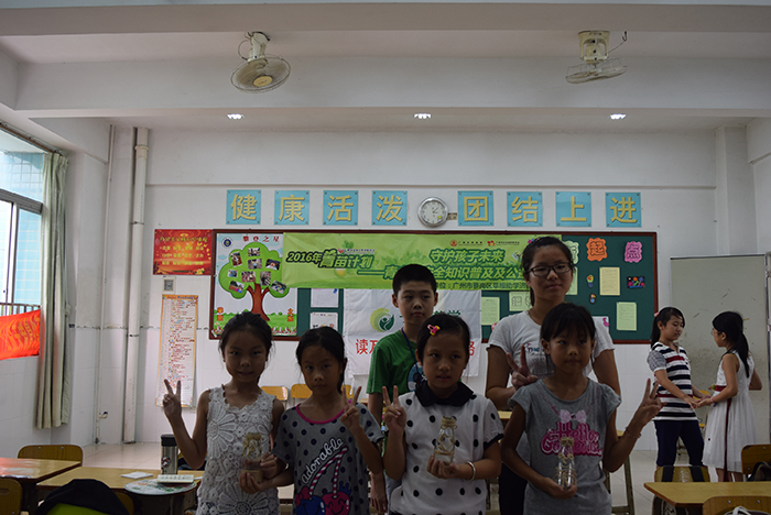 今天早上大雨倾盆,但浇灭不了营员的热情,大家都准时到达课室等待上课。第一堂课是由志愿者黄玉凤老师带来的“变废为宝”手工DIY课。老师在课堂上教大家如何把酸奶瓶做成花瓶,认真听完后大家都跃跃欲试,两两一组,通力合作,有的做了一个笑脸,有的做了一个心形,有的做了一朵花,营员的奇思妙想让废弃的酸奶瓶变成漂亮又实用的插花瓶。