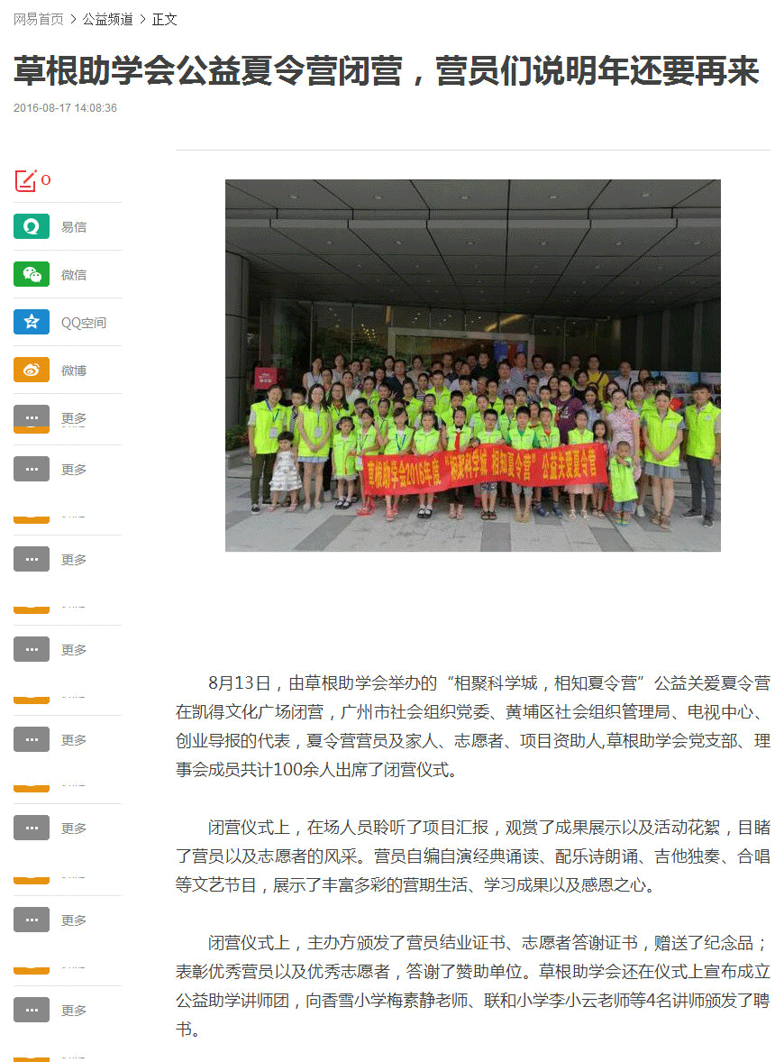 草根助学会公益夏令营闭营,营员们说明年还要再来