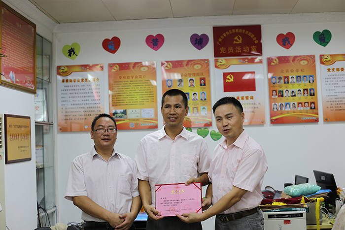 草根助学会理事会、党支部代表向志愿服务之星周巨波颁发志愿服务之星荣誉证书