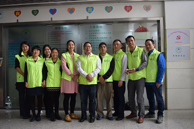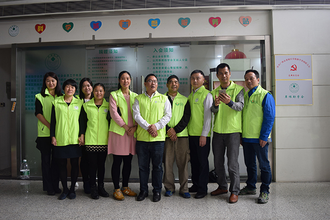 参加草根助学会新年茶话会暨科学城志愿服务站落成仪式的人员合影