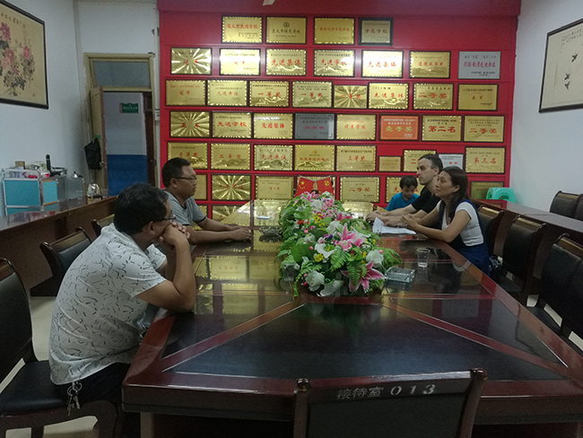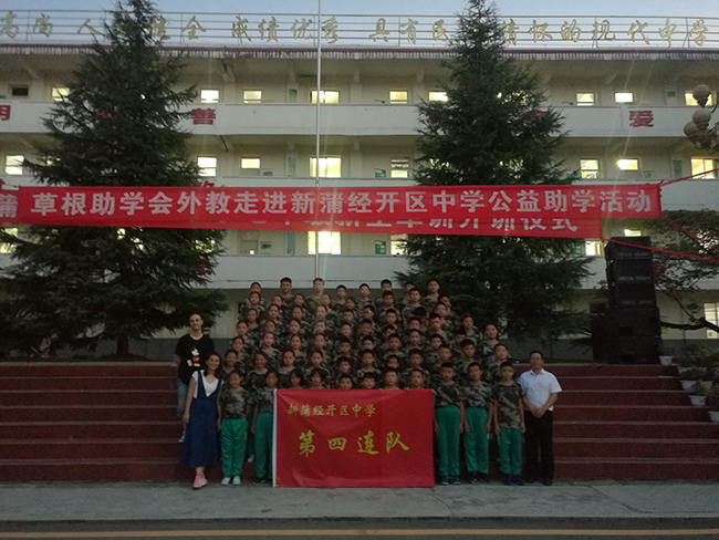 虾子中学负责人在微信朋友圈获知草根助学会开展的“外教进校园公益助学活动后”,当即邀请草根助学会组织外教为该校参与军训的七年级500多名学生授课。在虾子中学,外教Batten Glenn和susan以“立足中国、放眼世界,做一个国际人”为题,为该校师生分享了英语课程关于世界国家的学习,并做了“做一个闯荡世界的国际人!”的主题演讲。虽然天气炎热,但外教形象化的教学方法、集针对性、趣味性于一体的教学内容,吸引师生的兴趣,大家不时与老师互动,不时为精彩讲解鼓掌。课程结束后,同学还好奇地向外教寻问,找外教合影。