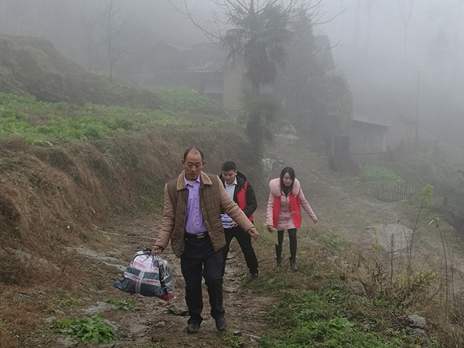 12月3日,草根助学会志愿者震君、贵州弘鑫公司志愿者杨弘、王艳利用周末休息时间,冒着凛冽的寒风,在大雾中驱车穿越山陡弯多的三十多公里并徒步泥泞崎岖的山间小路,走进了黔北工农村,在工农小学爱心教师吴老师的带领下,探访了工农村三名贫困学生。
