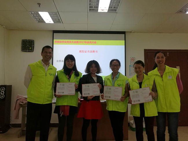 会上,黄埔区草根助学会、广州市草根助学促进会会长分别向理事、监事颁发聘书,向爱心人士颁发爱心证书,向会员们颁发会员证书。按照以往惯例,会议仍然安排了集体宣誓环节。草根助学会会员行志愿者礼,并宣誓:“志愿加入草根助学会,严格遵守法律法规和草根助学会章程,依法依规开展公益助学活动,积极主动参与公益活动,自觉维护草根助学会品牌,主动接受公众监督”。