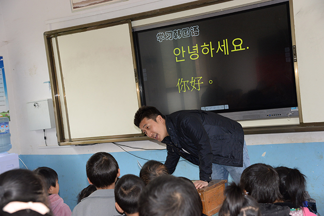 草根助学会关爱留守儿童“韩国风情”课堂现场