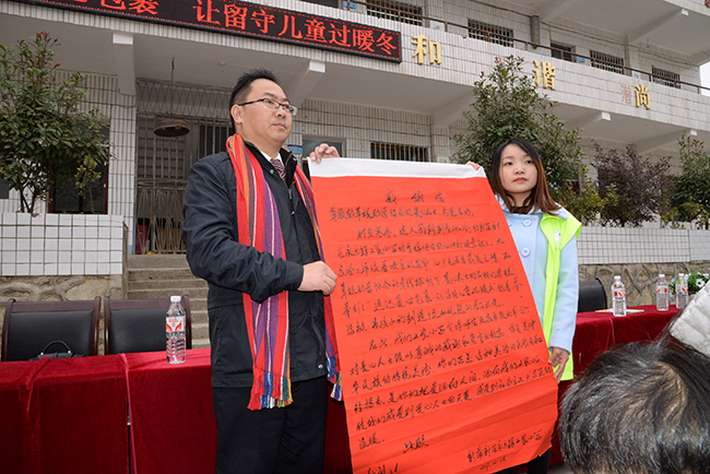 在活动现场,工农小学师生表达了他们的感谢和喜悦之情,向草根助学会及资助人送上了感谢信表示,“虽时至寒冬,但全校师生及家长暖意融融、激动万分;送达爱心包裹让留守儿童过暖冬的活动,给留守儿童们创造了更加优越的学习环境,全校师生及家长对此致以真诚的感谢和崇高的敬意”。工农小学负责人吴老师说,留守儿童,因为父母不在身边,缺少关爱,有些孩子的性格变得内向。通过草根助学会这个平台,让他们得到了千里之外的帮助,爱心人士送来的助学款物,给了他们实在在在的实惠,让他们感受到的社会的关爱,温暖着孩子的心灵,同时趣味课堂开阔了眼界,必将影响和改变这些孩子的生活,激发了他们学习的兴趣。受助学生表示,感谢草根助学会和爱心人士对他们的帮助,减轻了他们的家庭负担,增强了他们学习的信心,他们一定努力学习,以更优异的成绩回报草根助学会和资助人,同时也要践行草根精神,去做一名志愿者,力所能及去帮助他人。