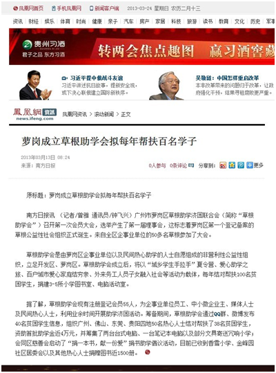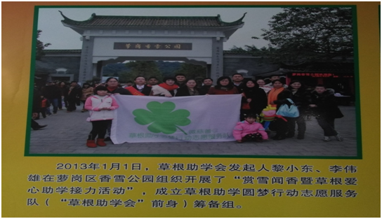 2013年3月14日,服务队在萝岗区民政局注册登记为“广州市萝岗区草根助学济困联合会”,这标志着萝岗区第一个登记备案的草根公益性社会组织正式诞生。