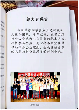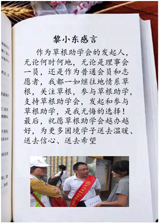 草根助学会成立初起的发起人及管理团队成员黎小东、饶登兴、卢越华、刘义成,何放权、郭文青及现任会长廖伟利、秘书长刘燕娜等纷纷发表感言,热烈祝贺草稿助学会成立九周年及参与草根助学的心得体会。