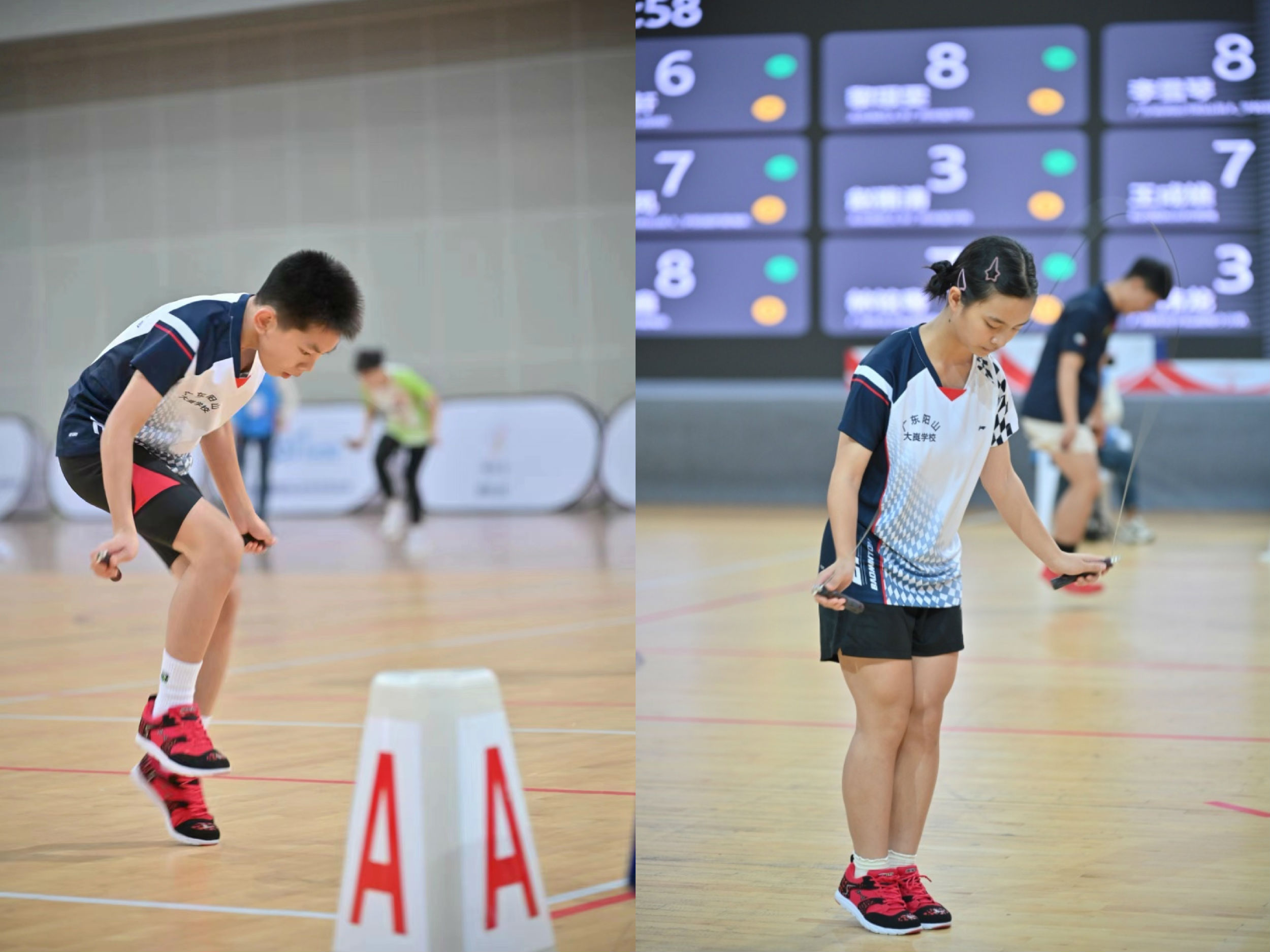 继在温州乐清站历史性突破取得4个单项全国第一名后,大崀学校圆梦跳绳队在刚结束的广东省中小学生跳绳比赛中一如既往地发挥稳定,12名队员均取得相关项目的全省前八名。其中,冯伟炎在广州花都、佛山顺德等众多的高手中脱颖而出,以1004下的成绩勇夺三分钟初中男子单摇跳冠军。