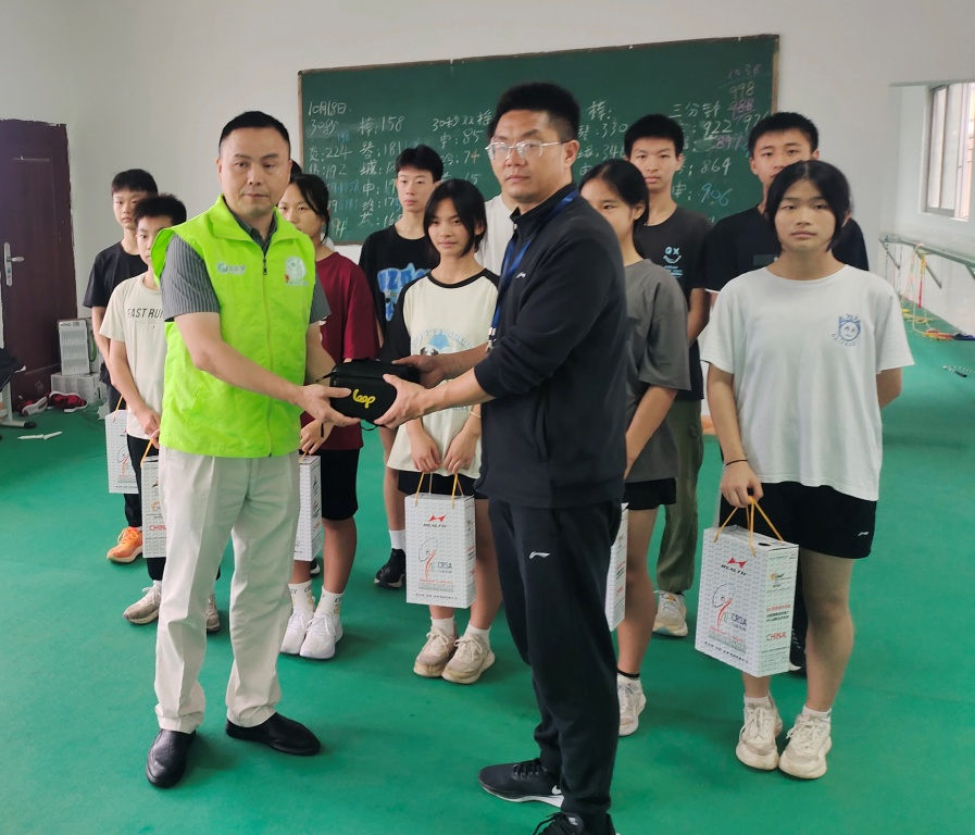 在草根公益联合会党支部书记、会长及党支部委员等五人回访答谢爱心企业的座谈中,广州亿莲晟电气工程有限公司负责人陈总得知大崀学校圆梦跳绳队的情况,豪不犹豫的为跳绳队捐赠了比赛队服、鞋子、背包及钢绳等装备共计12030元。队员们穿上新的队服上场,更是大展雄风、英姿飒爽,信心满满,越战越勇,不负众望取得了佳绩。