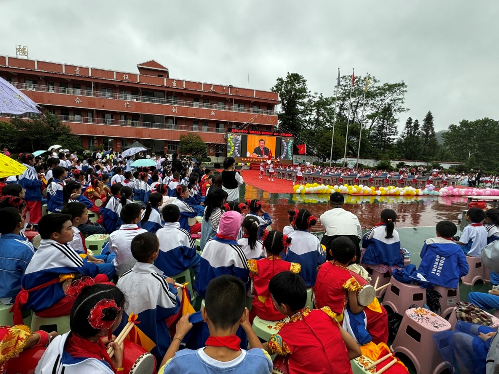 随后观赏了校园内盛大而欢快的庆祝六一表演节目,分享他们佳节的幸福快乐。孩子们身着各个少数民族节日盛装,脸上洋溢着幸福的欢笑。台上,师生们同台表演舞蹈、朗诵、腰鼓、情景剧等才艺展示;台下,学生和家长们兴高采烈,掌声连连,欢声笑语充满整个校园。