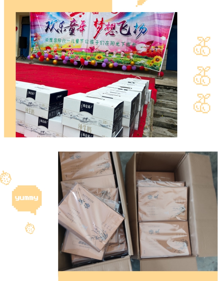 会长李阳在台上发言,祝贺孩子们六一节快乐,好好学习,不辜负老师的教育和亲人的期望,实现自己的梦想。并转达草根家人们的关爱,为孩子们送上六一爱心礼包50箱牛奶、500本笔记本。