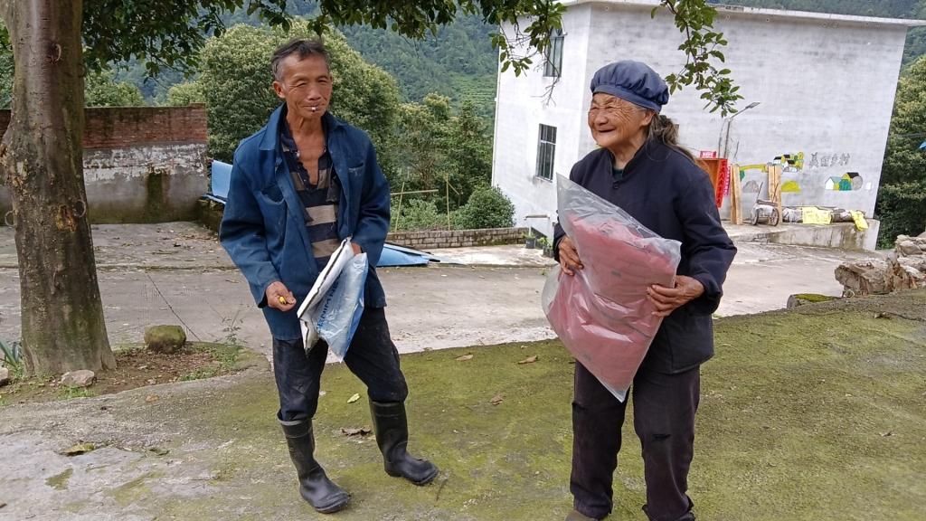 看看老奶奶收到红色的外套,喜笑颜开,应该是非常的喜欢和开心。