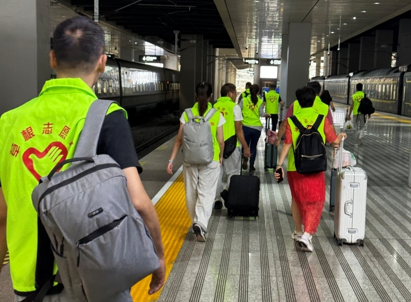 列车到站后,草根党员一行下车协助维持旅客上下车良好秩序,帮助旅客提大件行李,指引路线及解答疑问等。