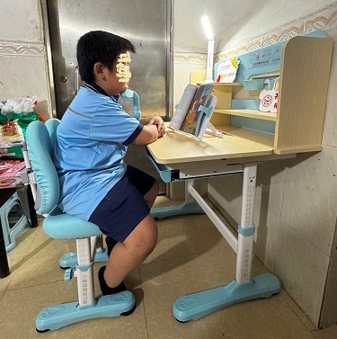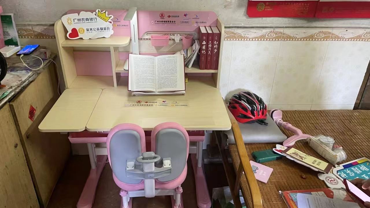 在狭小拥挤的出租屋内,能用上新的一套桌椅、台灯、坐姿矫正器及,阅读着四套名著书籍,孩子露出开心和幸福的笑容。这份爱像一场及时雨,滋润着他们渴望的心田;这份惊喜和快乐更会陪伴激励着他们,在知识的海洋里翱翔、前行。
