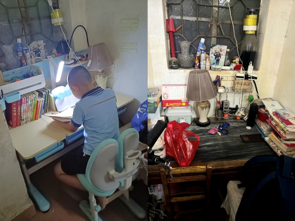 志愿者们携带书桌、书籍、文具等爱心物资前往小馨家庭进行走访,详细了解孩子的学习情况和家庭状况。在他们租住的城中村家里,小馨妈妈说小馨今年10岁了,兴趣爱好是写字、画画,由于是外地户籍,不符合条件入读福利学校,普通学校也未符合入学条件,目前只能居家自学,日常由自己居家进行学习辅导,并不定期进行康复治疗。