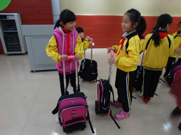 下课铃响后,黄埔区联和小学20名家庭贫困的外来务工人员子女在学校老师的带领下陆续从课堂上来到我们所在的多媒体教室,举行了简单的微心愿包送达接收仪式。孩子们见到一个个崭新的书包既惊喜又疑惑,直到他们知道这些书包是叔叔阿姨们送给他们的心愿礼物,才开心地笑起来。草根助学会秘书长刘燕娜告诉孩子们,这是草根助学会以及万科东荟城社区小朋友爱心义卖筹集的爱心善款,为他们买来的新书包,同时是草根助学会的志愿者们挤出时间把新书包送过来。孩子们领到新书包后,与草根助学会志愿者们与联和小学的老师合影留念。上课铃响起,孩子们开开心心地拉着新书包回到教室。