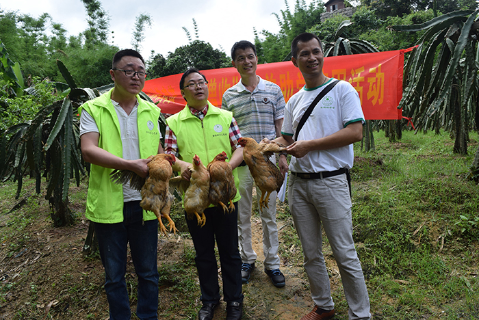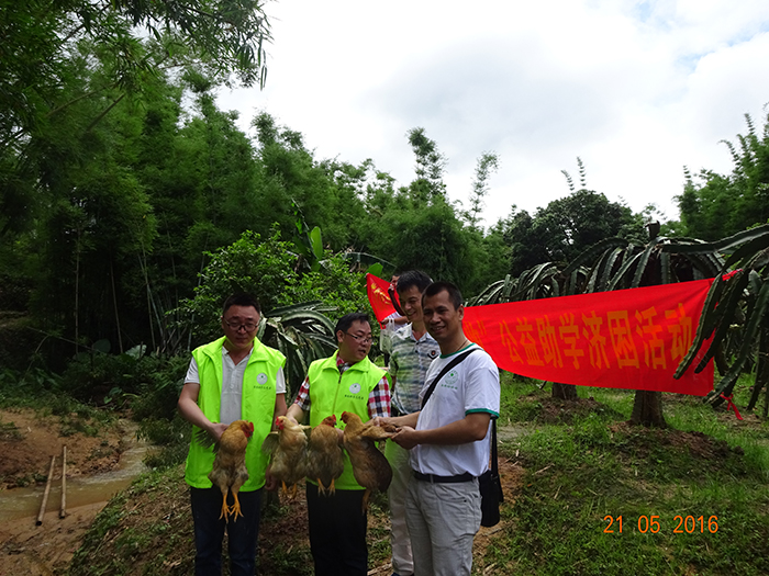 5月21日,草根助学会党支部结合“两学一做”教育实践活动,再次组织党员、会员和志愿者来到从化区良口镇磻溪村,开展“养殖扶贫、助农增收”公益助学济困活动,在广州市城管委驻村干部刘月仁与从化良口镇磻溪村委的协助下,走进贫困农户家中,认养走地鸡,给贫困家庭送去希望与信心。