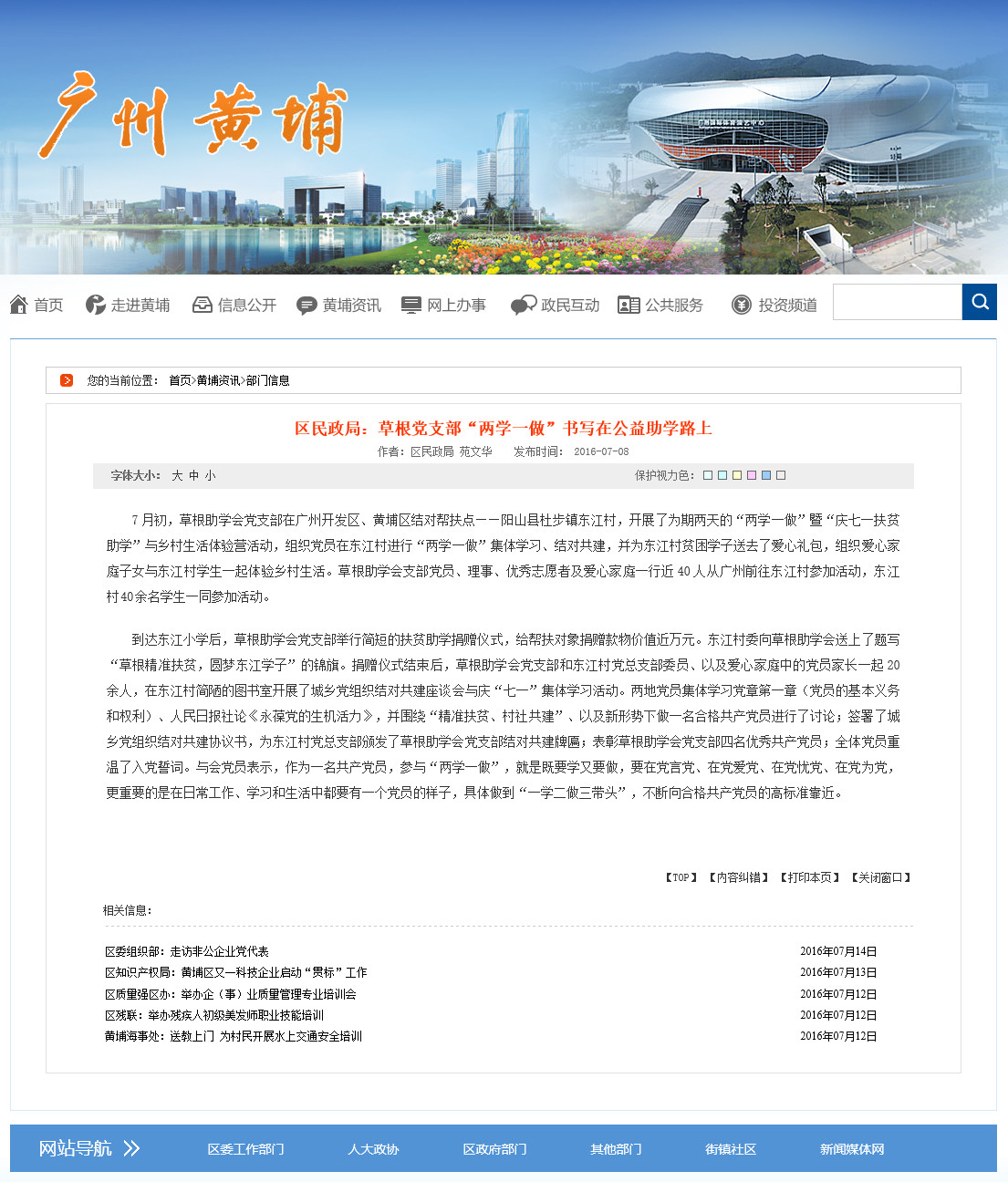 媒体报道:区民政局:草根党支部“两学一做”书写在公益助学路上
