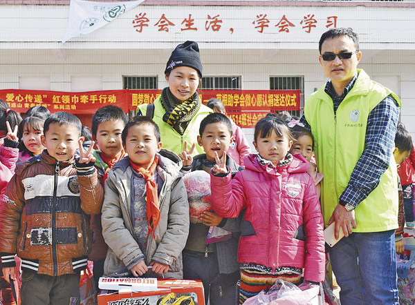 1月17日,学生们早早起来,经过一个多小时的颠簸之旅,来到满昌小学,与该校学生一起拔河、跳绳,并当起小老师,教授手工课和阅读课。他们还给满昌小学的55名留守儿童送上了玩具、衣服、图书等微心愿礼包。