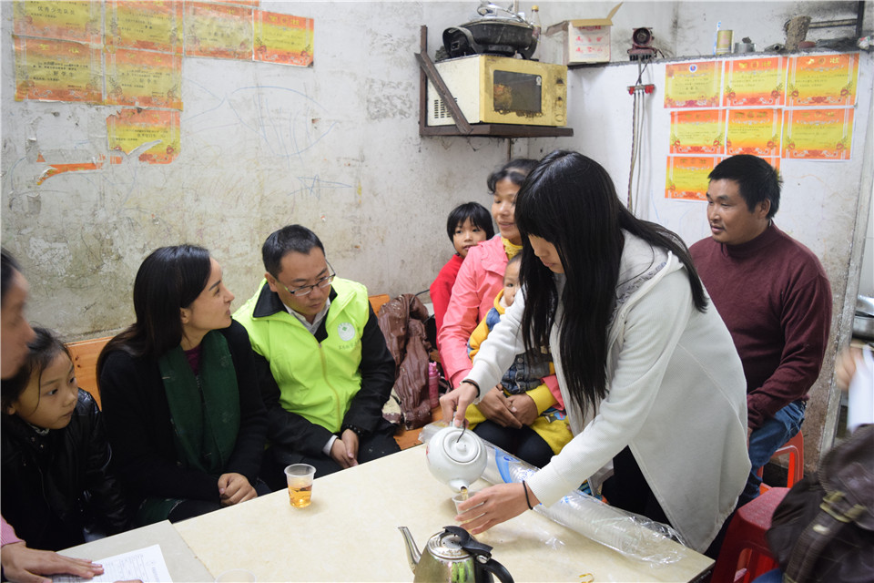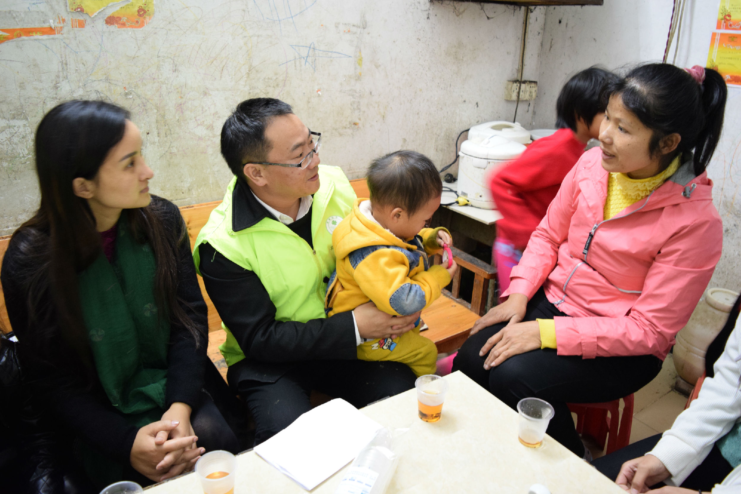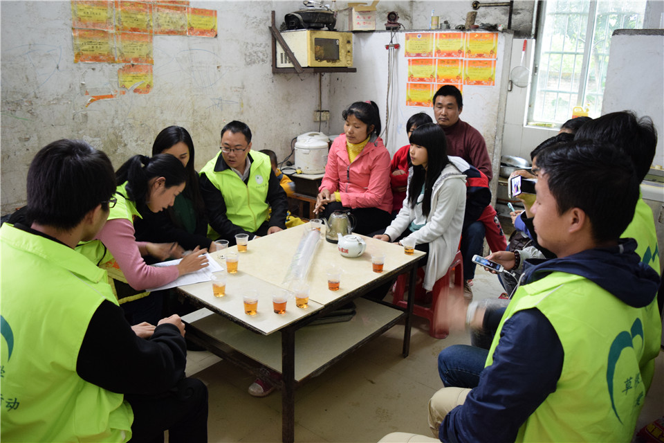 草根助学会志愿者与热心人士王馨平女士与冯**君家长交流