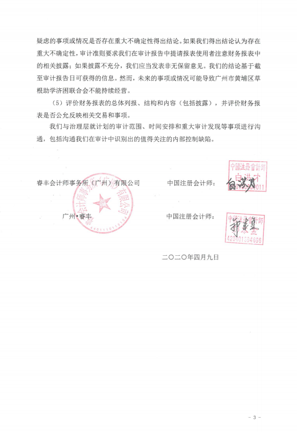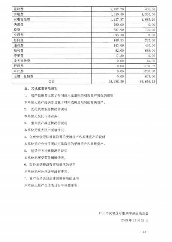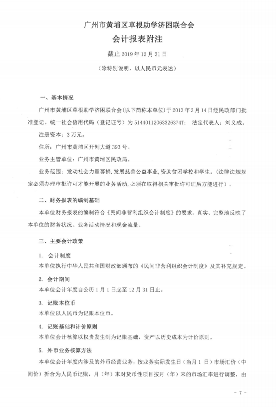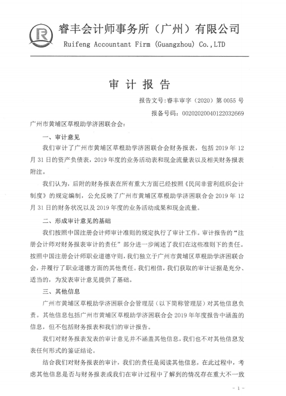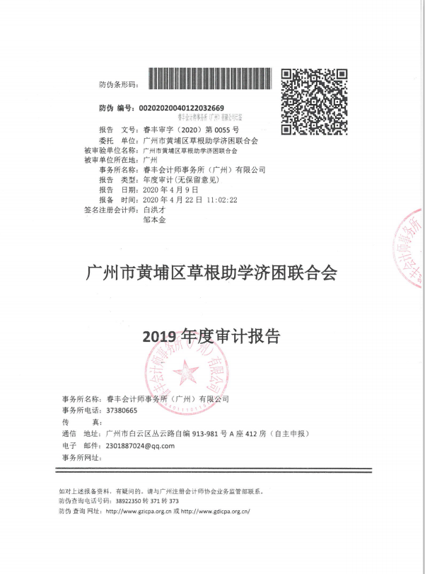 广州市黄埔区草根助学会2019年度财务审计报告