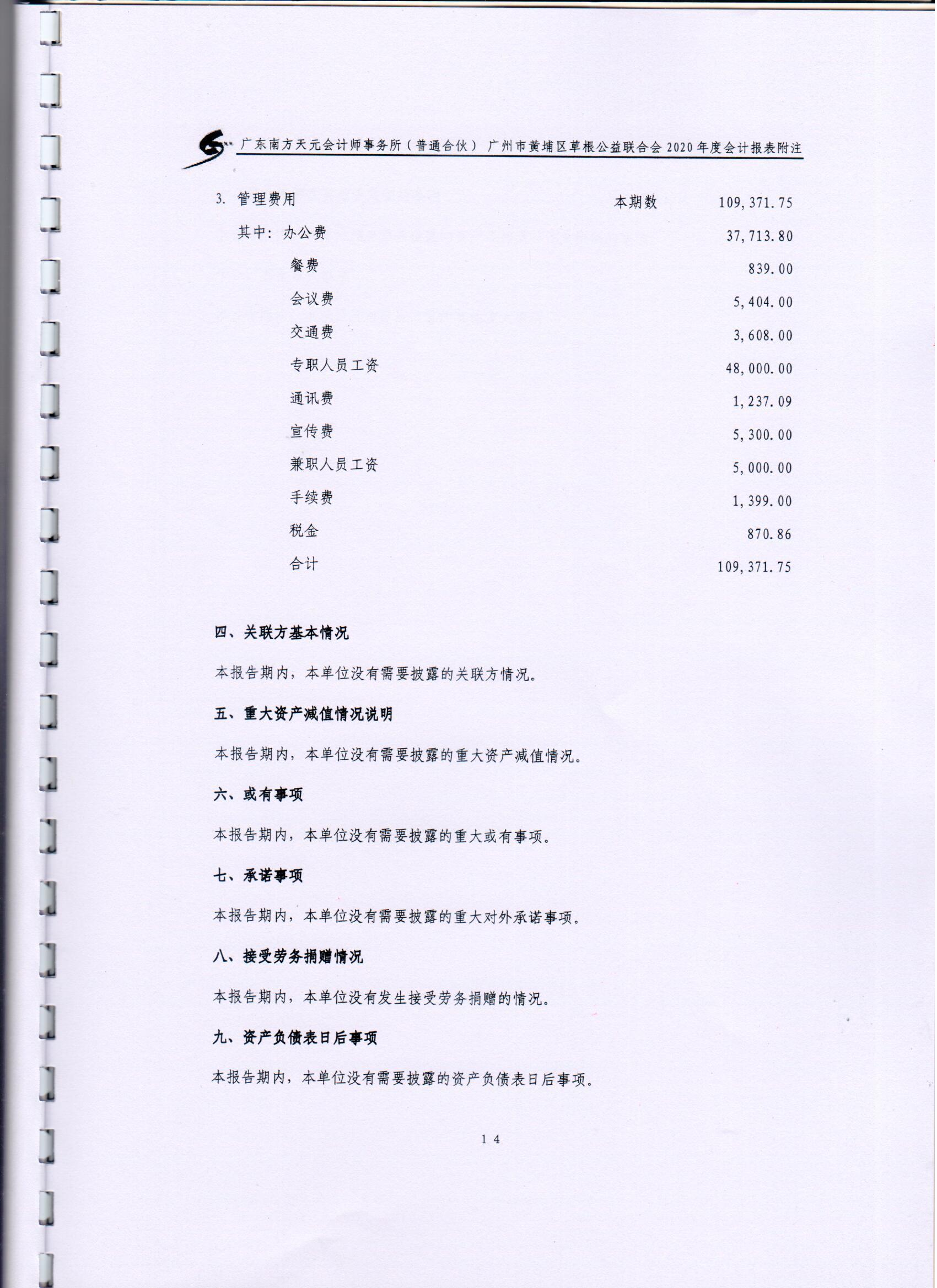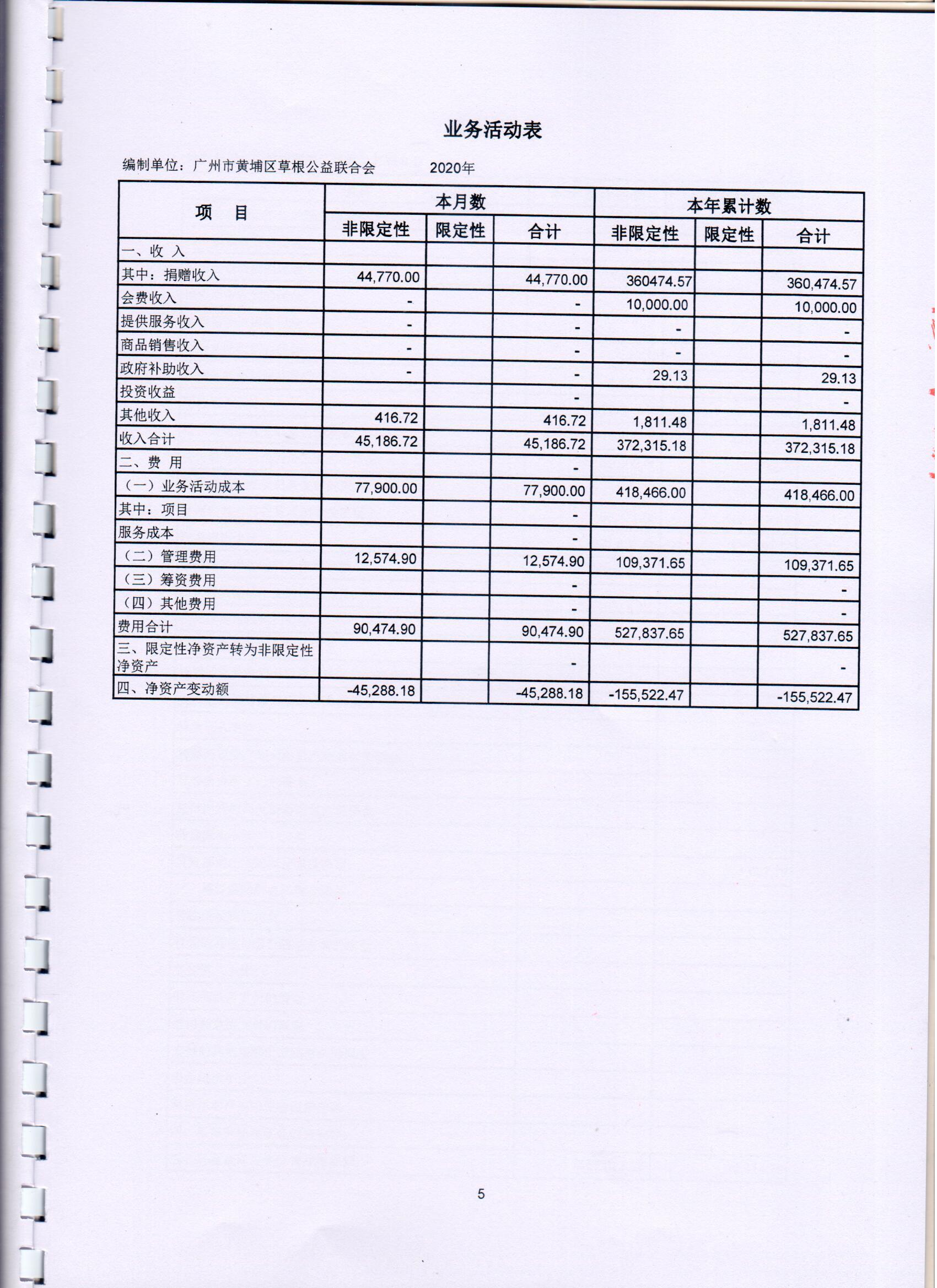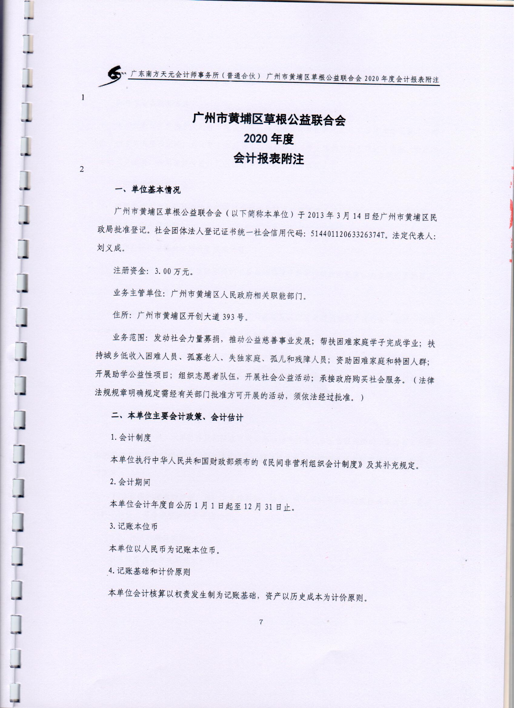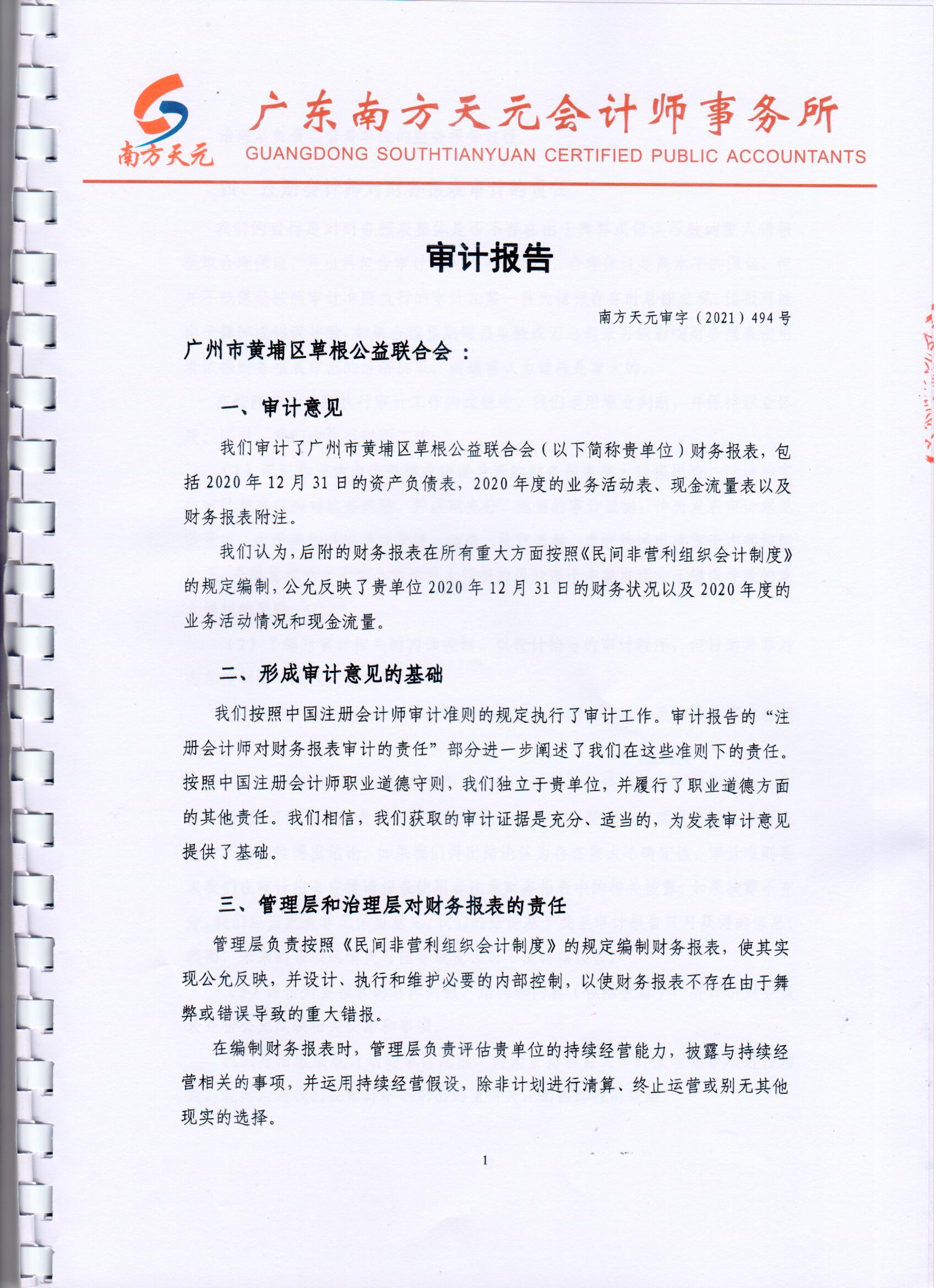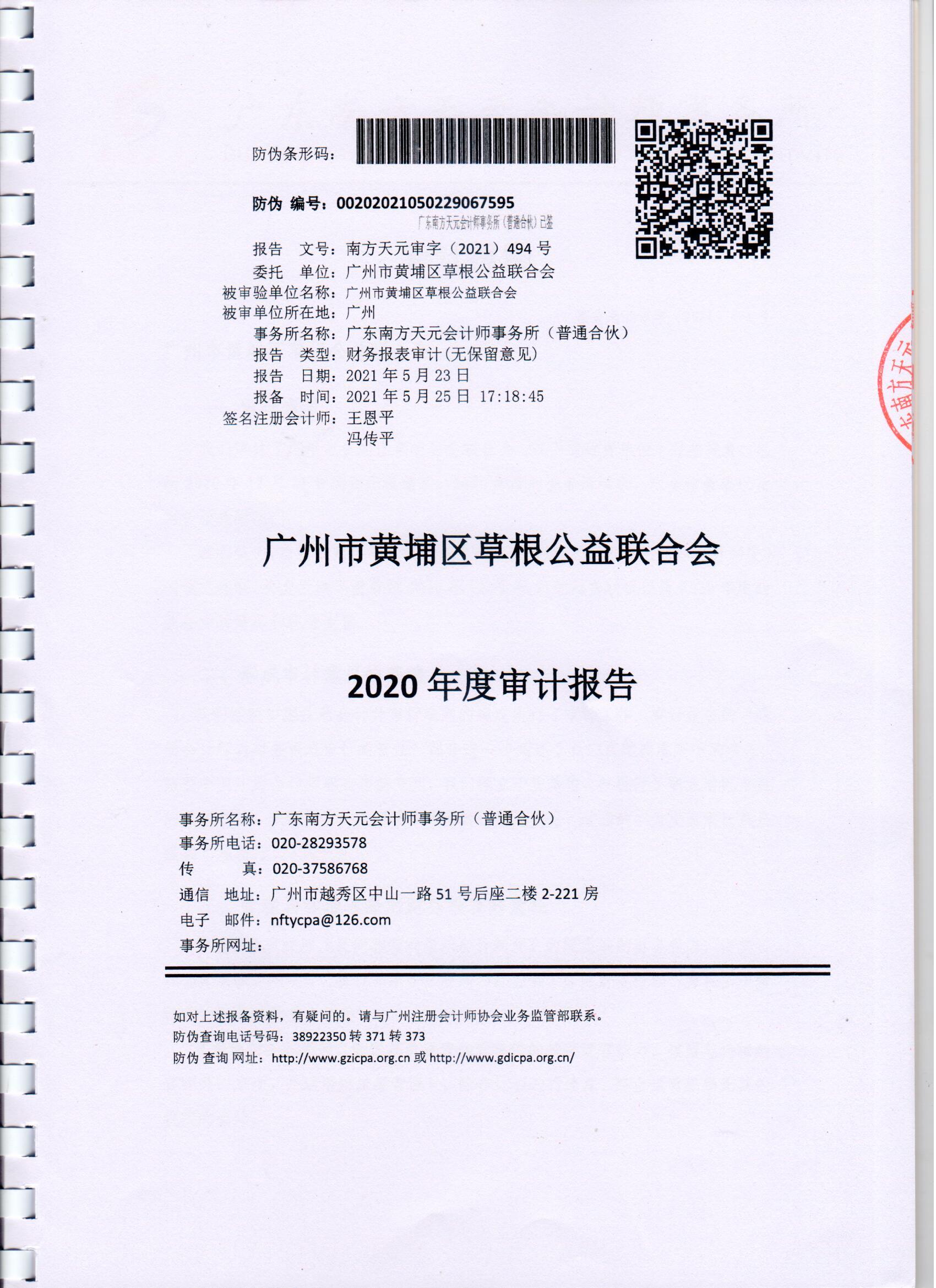 广州市黄埔区草根公益联合会2020年度审计报告