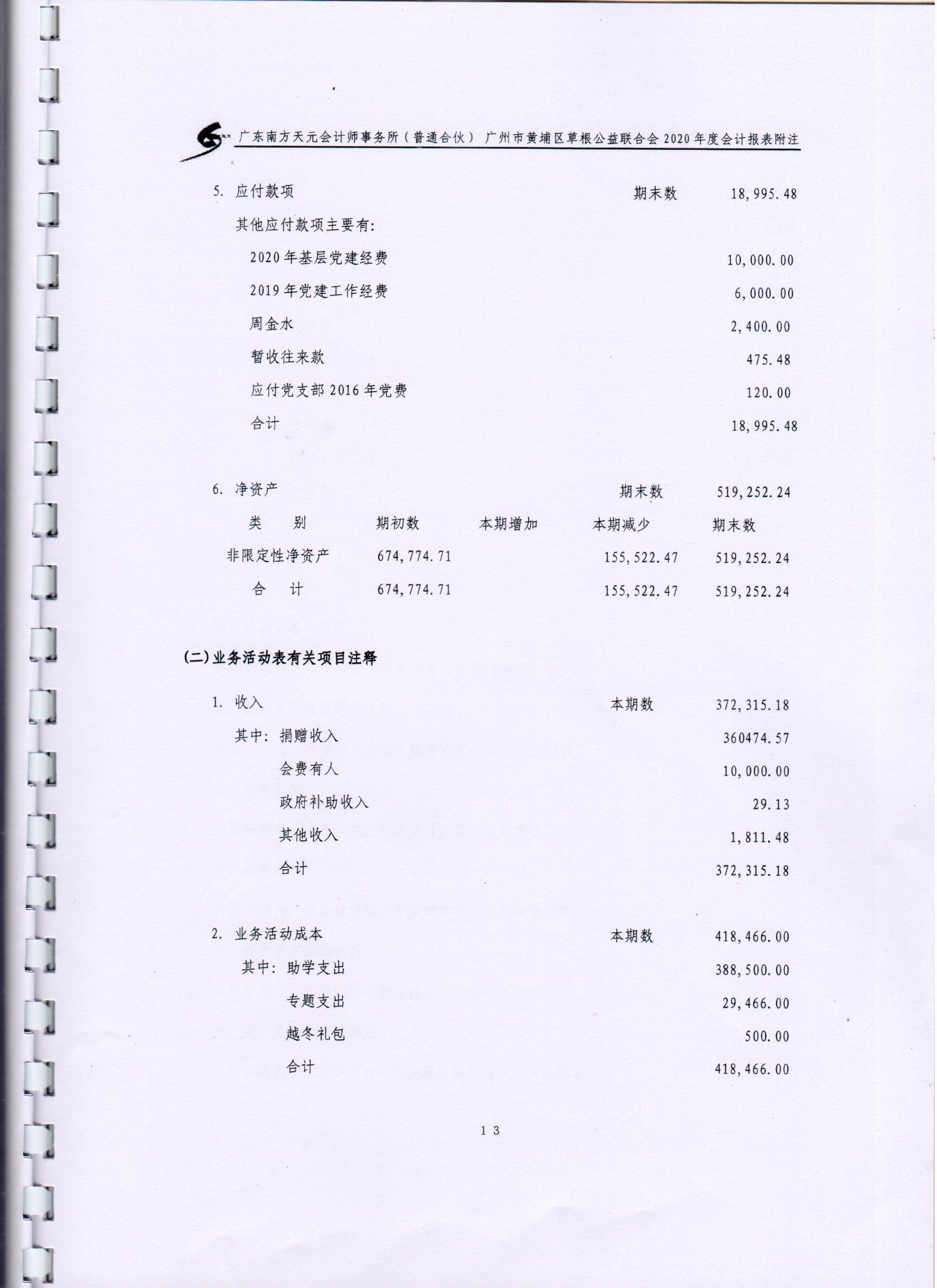 广州市黄埔区草根助学会2019年度财务审计报告