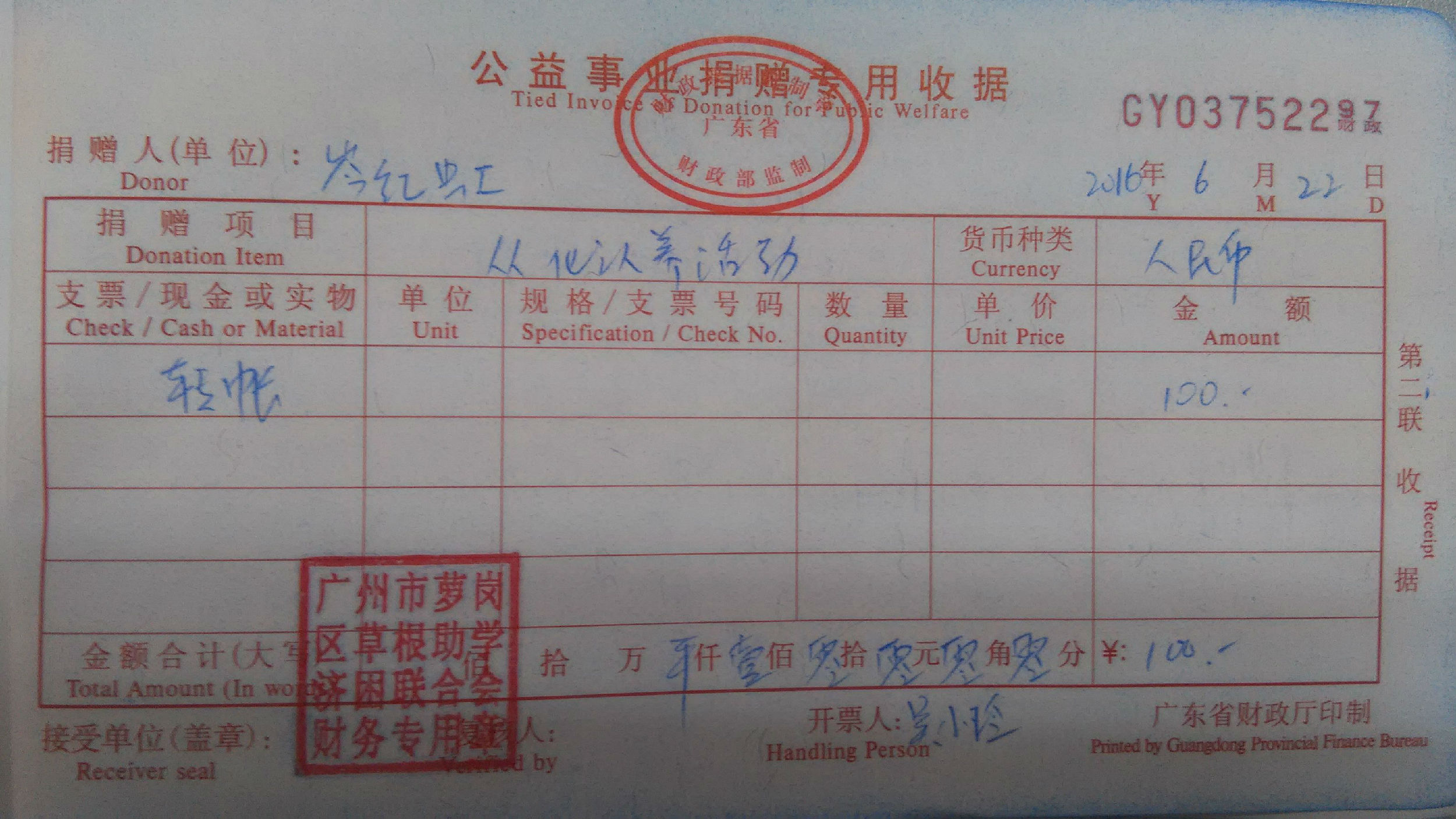 6月22日,爱心人士岑红虹女士通过草根助学会认养走地鸡2只,捐赠经费100元。至此,通过草根助学会向从化磻溪村贫困户认养走地鸡128只。待交付成鸡时,还将按50元/只的标准向贫困户支付费用。为此,从化磻溪村两户贫困养殖户半年间将各增收6000多元。认养走地鸡,助学增收,致电草根助学会会长助理吴小姐,电话1379437832