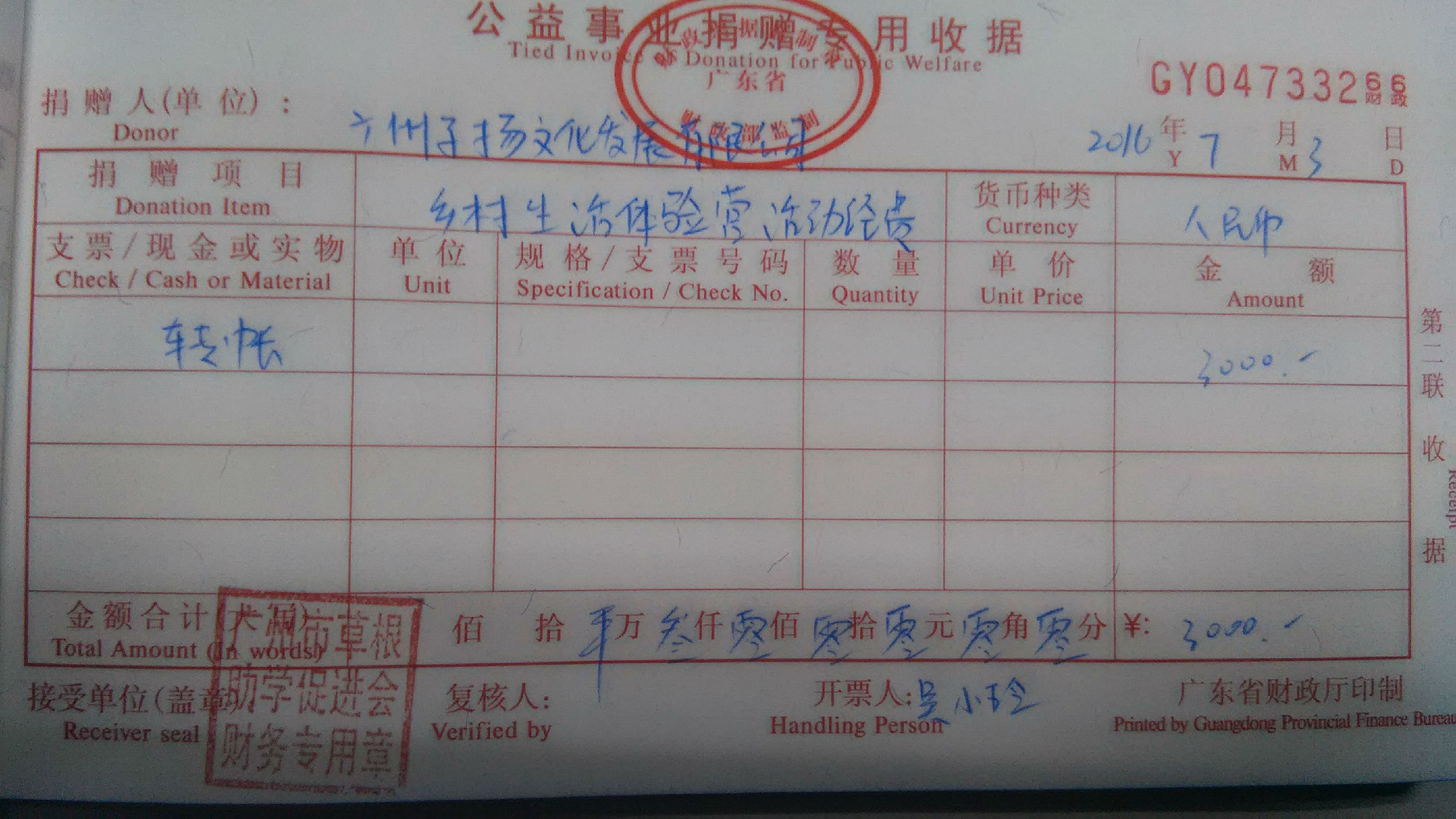 7月4日,广州子扬文化发展有限公司捐赠草根助学会第八期乡村生活体验营(遵义营)经费3000元,用于赞助营员营服及营员奖品等。感谢广州子扬文化发展有限公司对草根助学会的信任与支持。草根助学会将于7月11-16日在贵州省遵义市举办第八期乡村生活体验营,报名咨询电话13580325323