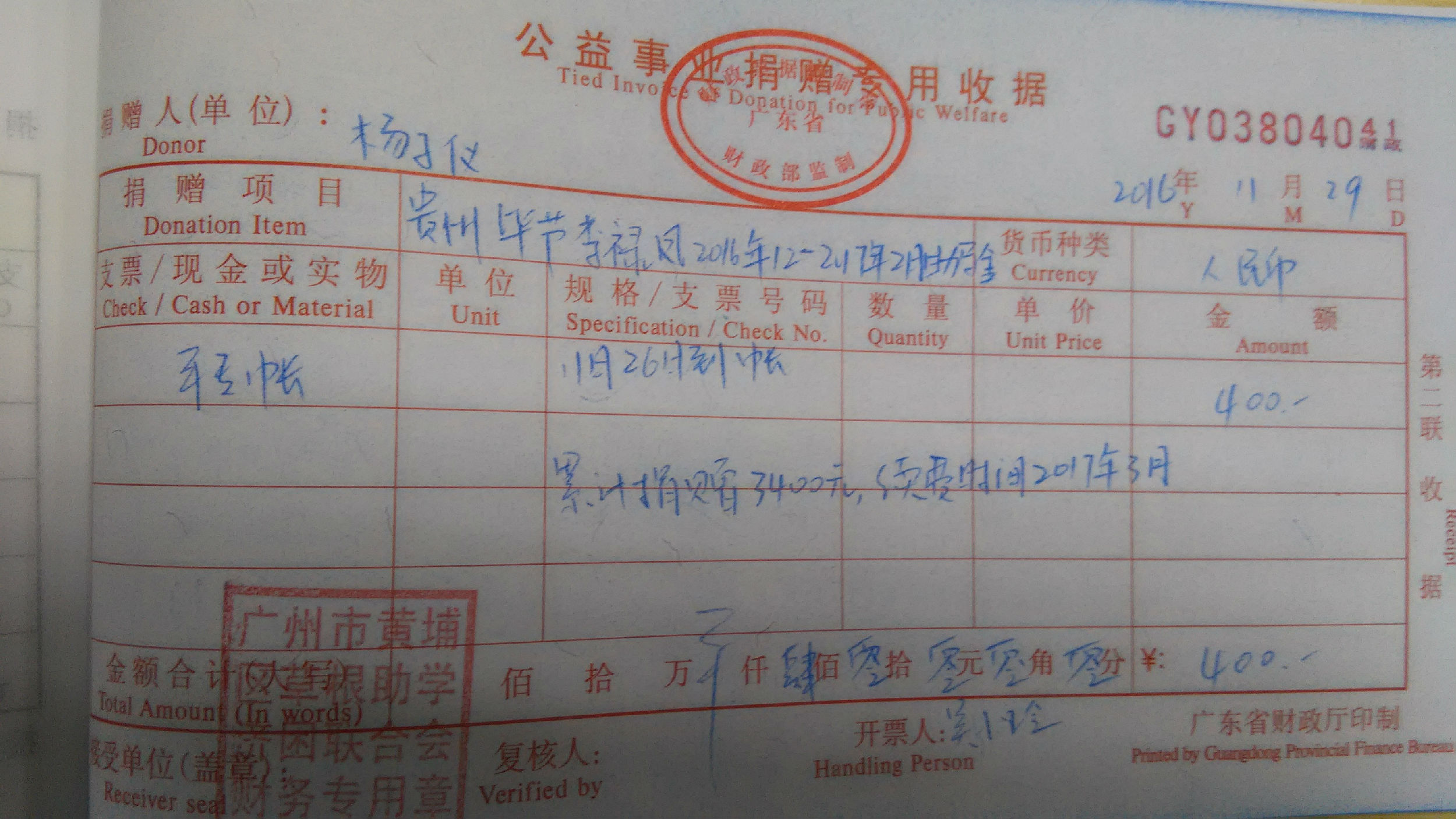 渴望求学的眼神让人心碎,热诚助学的精神让人感动。2016年11月26日,爱心人士杨子仪女士捐赠贵州毕节李禄凤同学2016年12月-2017年2月助学金400元,累计捐赠3400元,感谢爱心人士的善举,好人一生平安。参与草根助学,请加QQ群83468190,或关注草根助学公众微信caogenzhuxue,捐赠求助热线13794378327,QQ3245047171