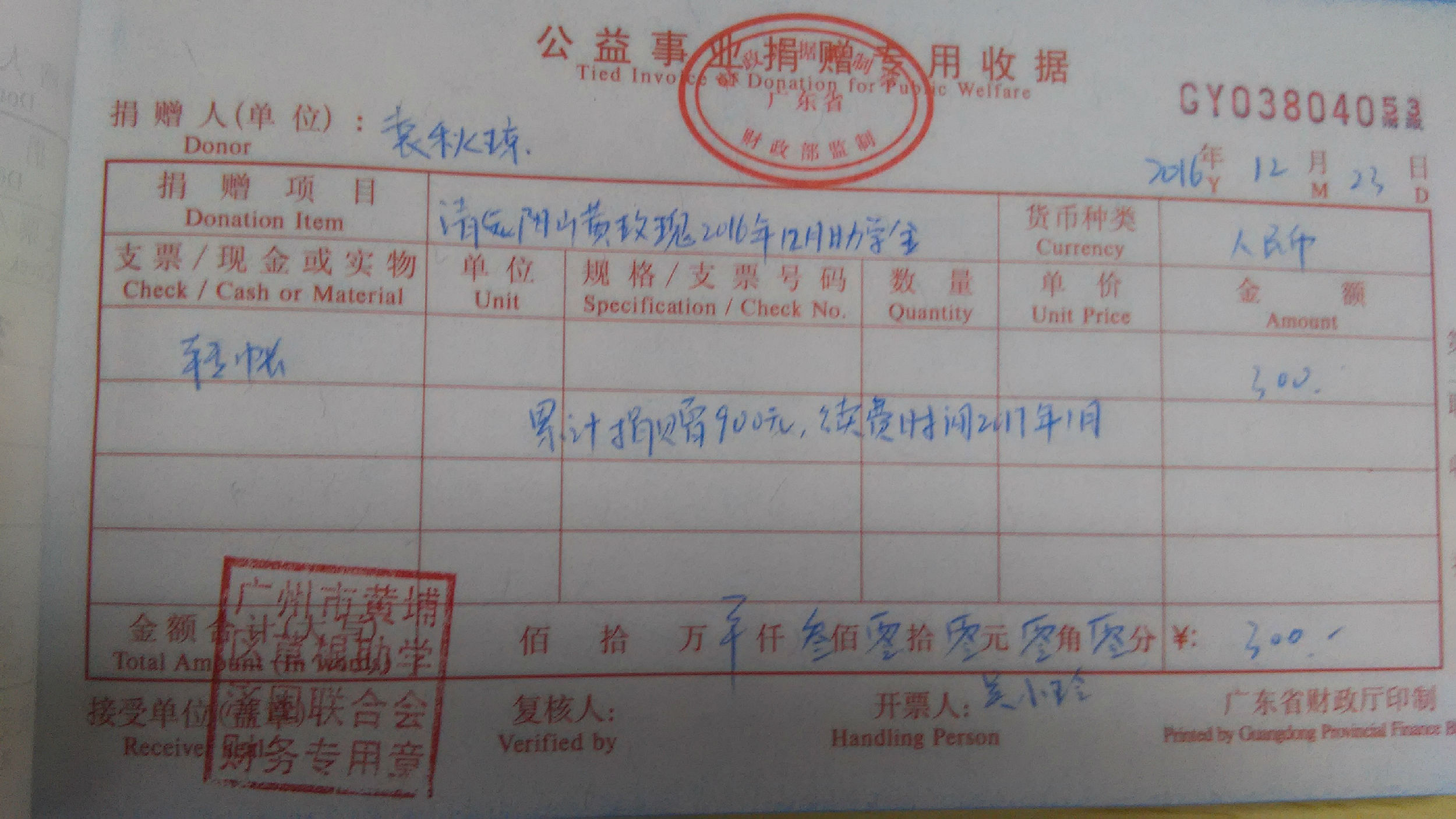 渴望求学的眼神让人心碎,热诚助学的精神让人感动。2016年12月23日,爱心人士袁秋琼女士捐赠清远阳山黄玫瑰同学2016年12月助学金300元,累计捐赠900元;何玥颖、 何芃骁捐赠贵州遵义汪先扬同学2016年12月-2017年1月助学金400元,累计捐赠1800元;12月4日,夏思欣女士捐赠梅州丰顺陈春秀同学2016年12月-2017年2月助学金600元,累计捐赠6000元;感谢爱心人士的善举,好人一生平安。参与草根助学,请加QQ群83468190,或关注草根助学公众微信caogenzhuxue,捐赠求助热线13794378327、13511883382,QQ3245047171、1104941837