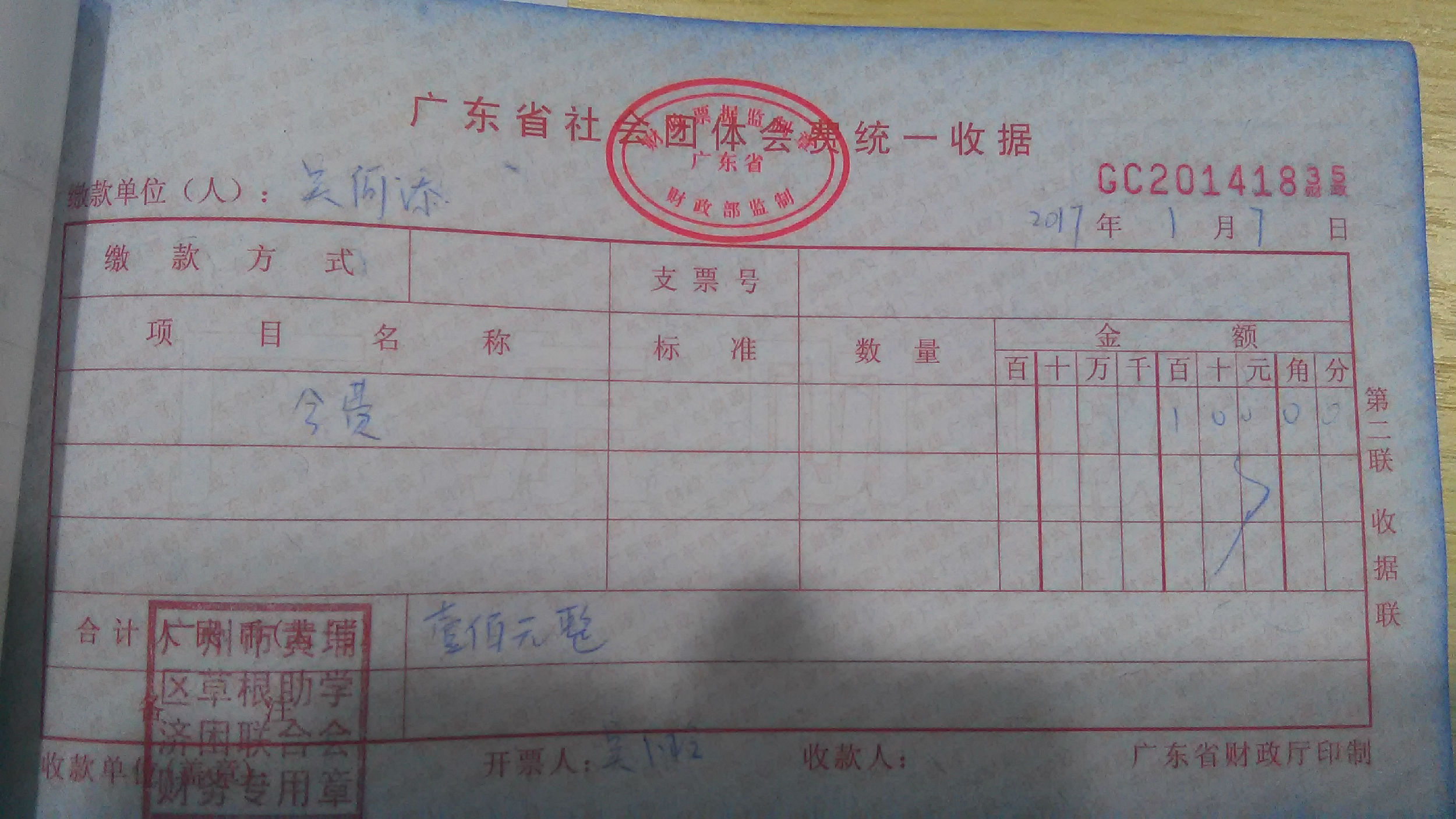 1月7日,草根助学会志愿者熊新元、吴何添先生申请加入广州市黄埔区草根助学济困联合会(会员编号:CGZX-042、CGZX-043),并分别缴纳会费100元,感谢会员对草根助学会的认可与支持。参与草根助学,请加QQ群83468190,或关注草根助学公众微信caogenzhuxue,网站http://www.caogenzhuxue.com 捐赠求助热线13794378327,QQ32450471711379437