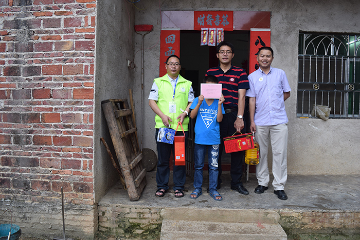 20160609资助人代表王权平、草根助学会代表黎小东与龙川县刘仕明合影(保护隐私)