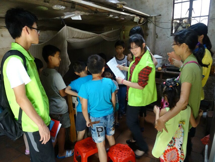 志愿者向小朋友们讲解草根助学含义