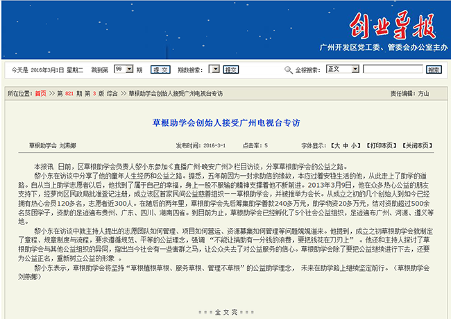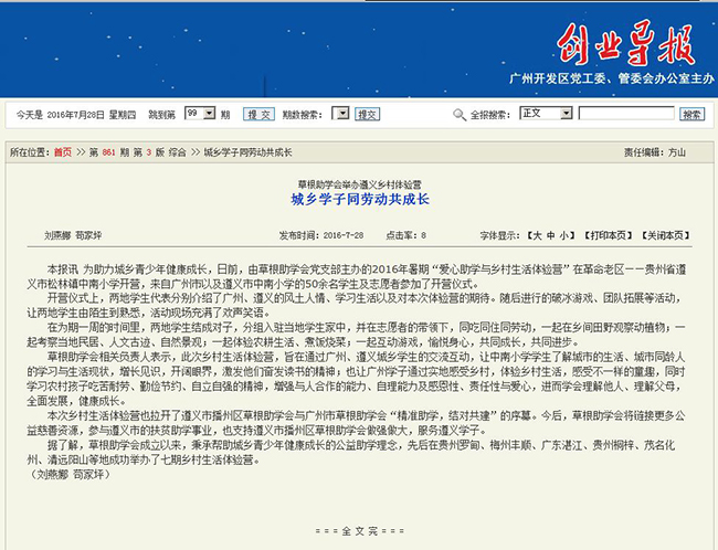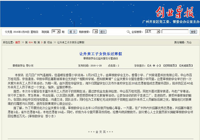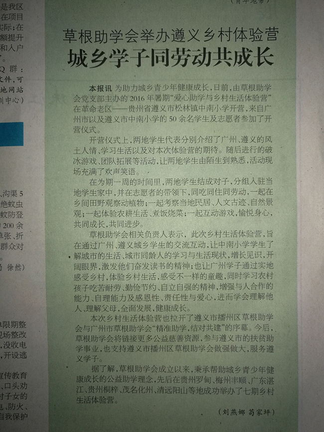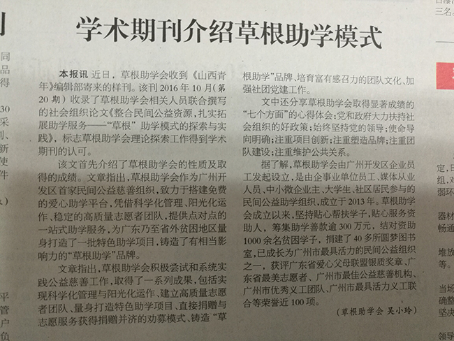 草根助学会2016年活动回顾-媒体关注