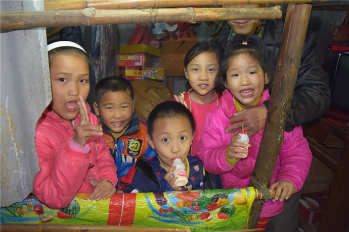 龙川县小庙小学的孩子获赠草根助学会送上的六一礼物