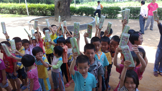 龙川县小庙小学的孩子获赠草根助学会